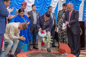प्रधानमन्त्री केपी शर्मा ओली वृक्षरोपण गर्दै